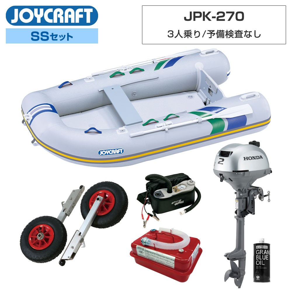 ■SSセット品:パプリカ270(JPK-270)ゴムボート、ホンダ2馬力船外機、ランチングホイール(LW-6)、超高圧電動ポンプ、4.5Lガソリン携行缶、エンジンオイル
