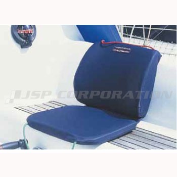●クッションの厚みは背中で7cm、お尻で3cmあり、クッション裏側にはゴム製の滑り止めが付いています。緊急時にはこのクッションを両手で抱いて飛び込むか、落水者に投げれば救命クッションとして使用できます。
