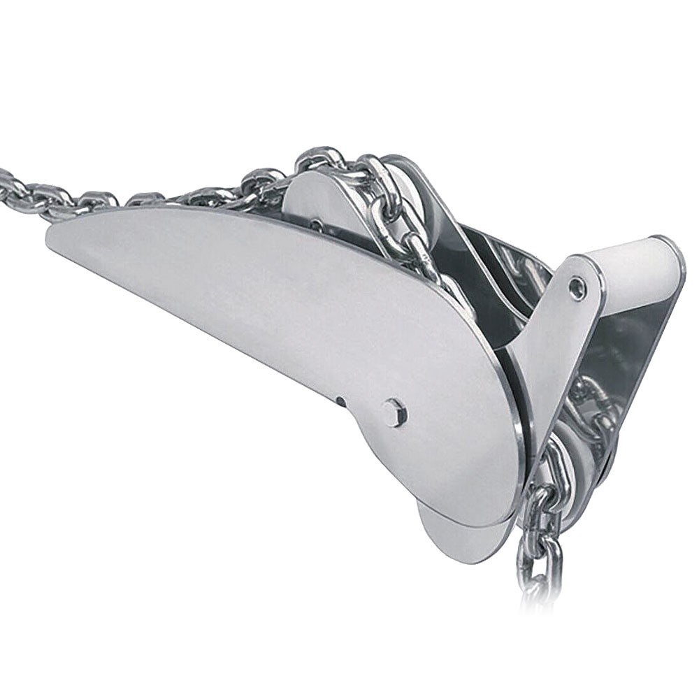 ●ローラー部分がヒンジで上下に動くので、アンカーの巻き上げ時にアンカーロープの角度に合わせてローラーが動きます。特にブルースやCQRなどのプラウ型アンカーにマッチします。