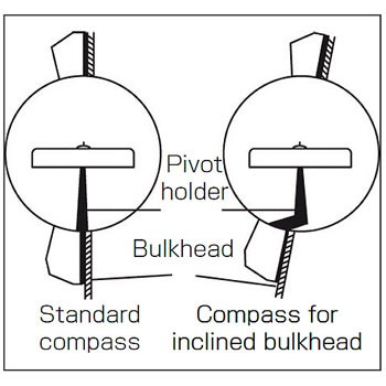 ●取付面のバルクヘッドが垂直から10°~25°傾斜している場合、専用のインクラインカードコンパスを使用すれば大きなピッチングにも対応できます。