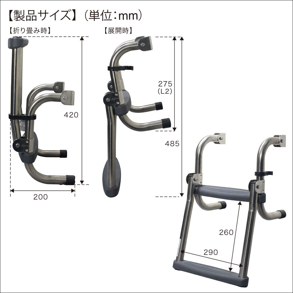 ●トランサム等に固定して使用するタイプの折り畳み式ステンレス製ラダーです。
