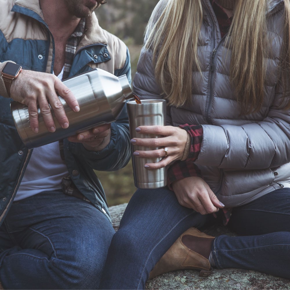 ●アウトドアシーンで使用するボトルは自然と調和するシンプルデザインとビッグサイズが似合う。