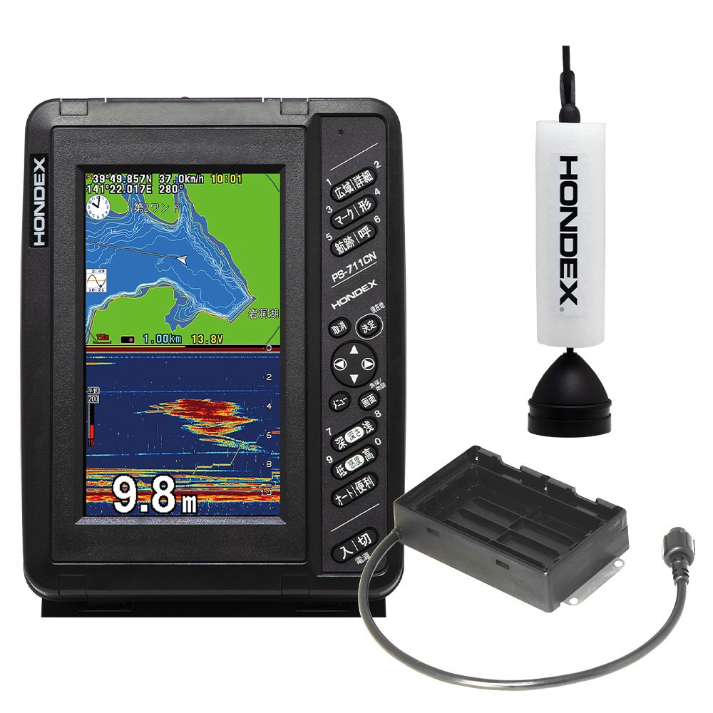 ■付属品:振動子(TD08)、GPSアンテナ(内蔵)、地図(全国詳細地図内蔵)、電源コードDC06(2m)、ハードカバー、自立ベース、取扱説明書