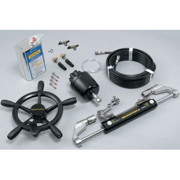 ■キット内容:キャプテンハンドル角有り(SEAPARTNERロゴ入り)、高圧樹脂ホース両端SUS金具付(HNH-04-15MC-SUS)、空気抜き三方継ぎ手(BKJ-30MX) 2個、キャンパカ金具(CFTG-04CZP) 2個、座付きエルボ(BKJ-50/90°エルボ) 2個、ヘルムポンプ(H-618-2)、ヘルムポンプ取付けボルトキット(SB-M60×50-SET)、空気抜きチューブ(VT-1)、作動油(HF-15-1.8SH)、シリンダー(右レバー)