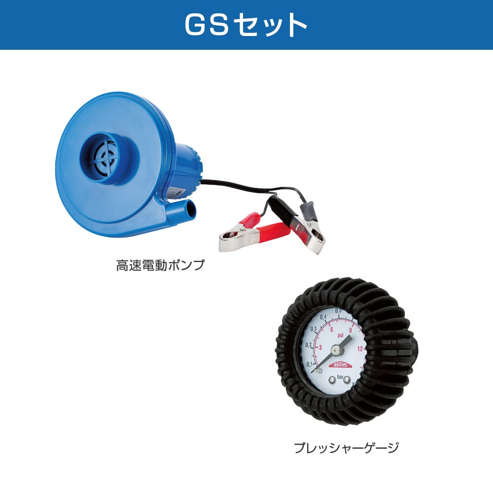 ■GSセット内容:TW-229Nゴムボート、高速電動ポンプ、プレッシャーゲージ