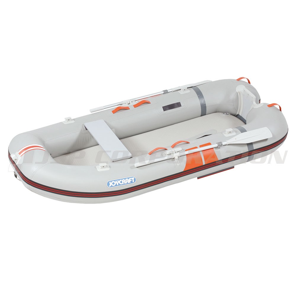 ●ローボートにエンジンを取り付けたい!そんな方のためにチューブの後方を少しだけ切り離してトランサムを設定しました。●着脱式フロントV型エアフロアを採用。●ボトム形状のフロント部分が、V型形状となり抜群の乗り心地です。●左右のチューブボトムに高さ60mmのフィンを持つダイナキールを設定。●ひも式などに比べ、スマートで確実に固定できるベルクロ式のオールストッパーを採用。●充実の標準装備(オールストッパー、ダイナキール、リフティングハンドル、アンカーローラー&ロープリーダー、フィッシングロッドホルダー4個など)
