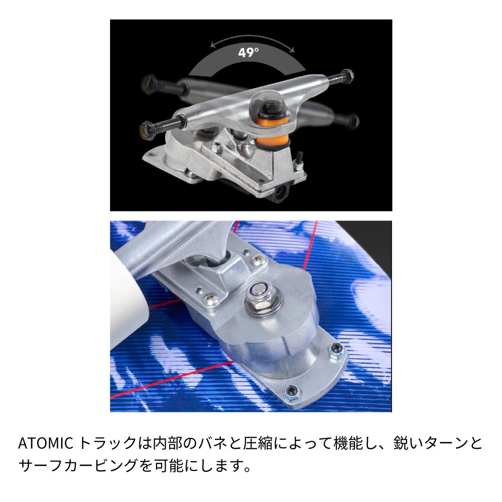 ●フロントのフリーモーショントラックは、サーフボードをポンプし、自由自在に動かし、スピードに乗りターンする動作を再現します。