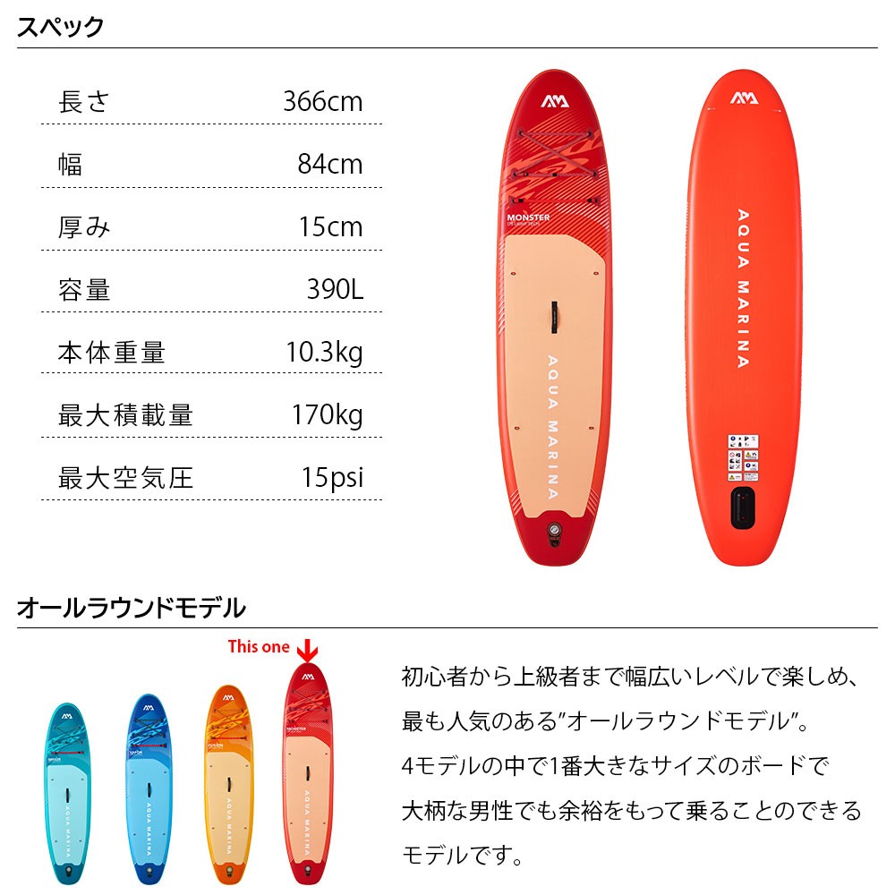 【箱潰れ】MONSTER モンスター SUP(スタンドアップパドルボード) インフレータブル パドル