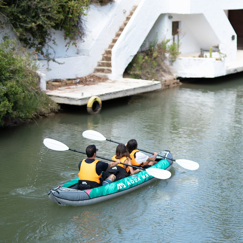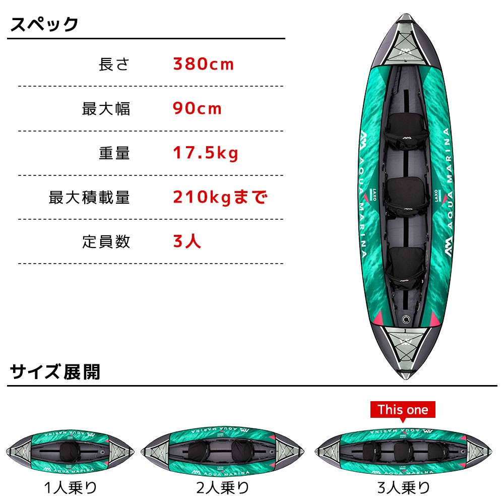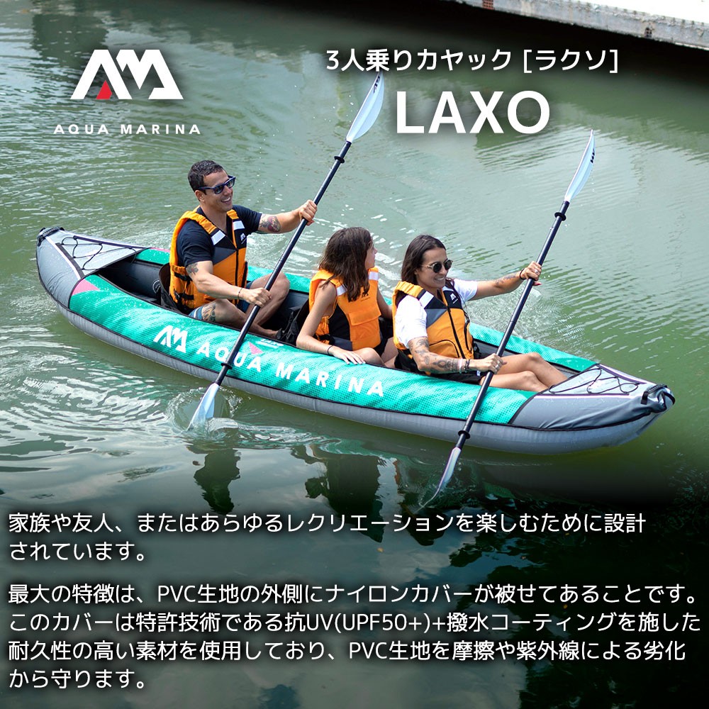 ●持ち運びや保管に便利な、3人乗りインフレータブル式カヤック。