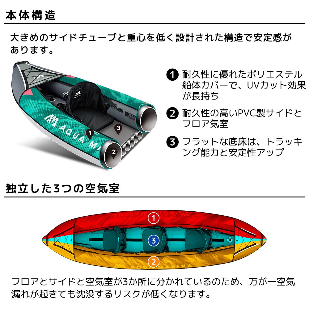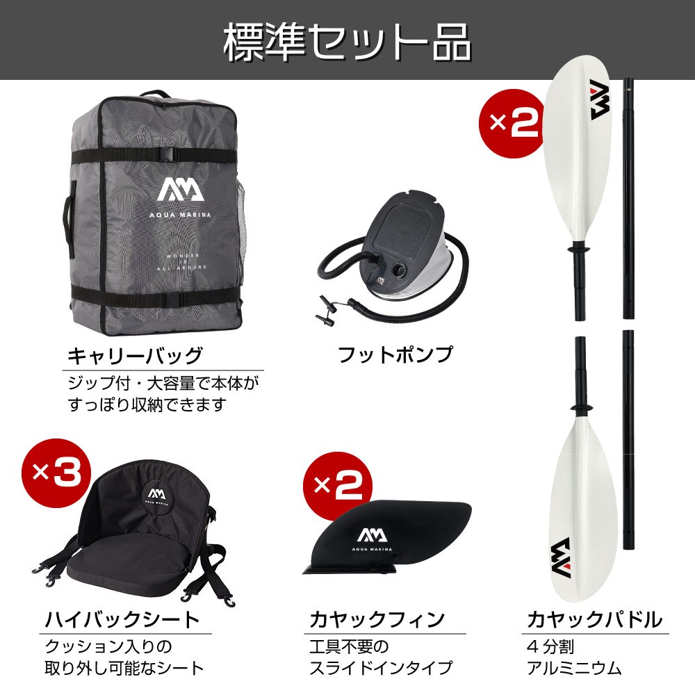 ■セット内容:本体、バック、フットポンプ、シート×3、パドル×2、フィン×2